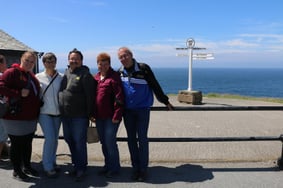 So steht es am Gebäude in Lands End. Zuerst aber gehts nach unserem etwas späten Morgenessen (0830Uhr) zur englischen Fassung von St Michael. Unsere Gastgeberin belehrt uns wenn wir den Namen französisch aussprechen und meint ein lovley Place. Nach kurzer Fahrt stehen wir bei Ebbe vor der prächtigen Insel mit dem Schloss St Michael. Wir gehen den Fussweg zur Insel und steigen hoch zum Schloss. Oben haben wir eine tolle Aussicht und besichtigen das Schloss mit der Kapelle. Das Wetter wird immer besser und im Windschatten treibt es uns schon wieder zum Schwitzen. Jetzt wollen wir aber den westlichen Teil von England sehen. Wir fahren nach LandsEnd. Zuerst bewölkt fast etwas Niesel und dann wieder herrlich blauer Himmel, so schnell wechselt hier das Wetter. Wir machen die Bilder vor dem bekannten Wegweiser und sehen uns die schöne Küste an. Jetzt noch auf zum nahe gelegenen Air Theater Minack Open. Bereits in Kulisse zur nächsten Aufführung bereit erleben wir eine einmalige Bühne. Diese ist in die Felsen und in herrlichen Blumen eingebettet, fantastisch schön. Nach einem schönen Tag gehts nach Newquay zurück und wir beehren Jamie Oliver in seinem Gasthaus an oben über der Küste gelegen. Von hier aus ist die Brandung der Sea und die Surfer bestens zu sehen. Wir nehmen nur das was Kleines, denn hier ist es klein fein aber teuer!